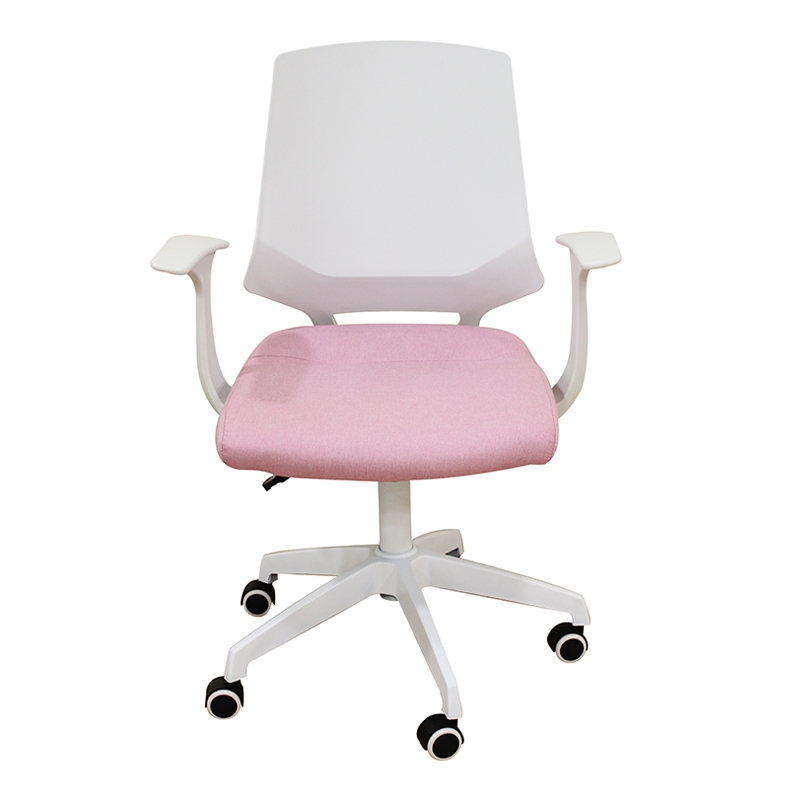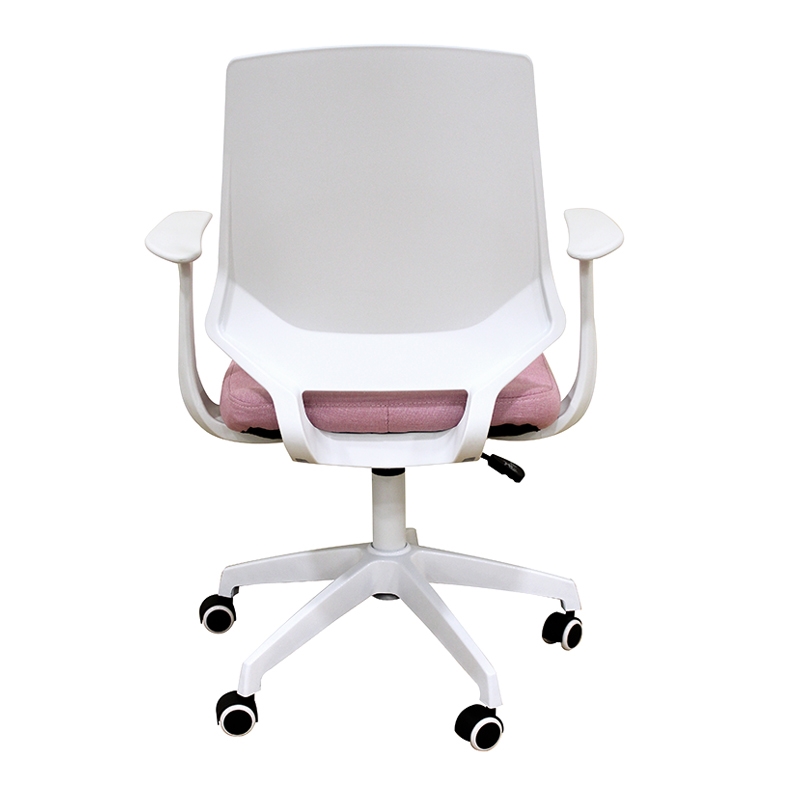 A1150-W πολυθρόνα γραφείου με minimal σχεδίαση και λευκή πλάτη χωρίς υφασμάτινη επένδυση για μέγιστη ευκολία στο καθάρισμα και ανθεκτικότητα. Η έδρα είναι ενδεδυμένη με ροζ ύφασμα και προσφέρει ξεκούραστο κάθισμα. Τα μπράτσα το αμορτισέρ και η βάση είναι λευκά. Το κάθισμα ρυθμίζεται στο επιθυμητό ύψος ανάλογα με το ύψος του γραφείου που χρησιμοποιούμε και το ύψος του χρήστη.