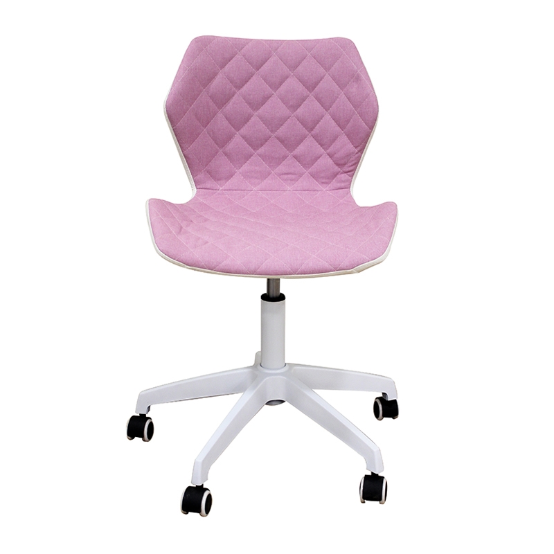 A1700-W καρέκλα γραφείου με εντυπωσιακό design, επένδυση από ύφασμα καπιτονέ σε ροζ χρώμα και από την πίσω πλευρά του καθίσματος η πλάτη είναι σε λευκό PU. Το κάθισμα ρυθμίζεται στο επιθυμητό ύψος και κάνει πλήρη περιστροφή. Η βάση και το αμορτισέρ του καθίσματος είναι μεταλλικά λευκά για μεγαλύτερη αντοχή.