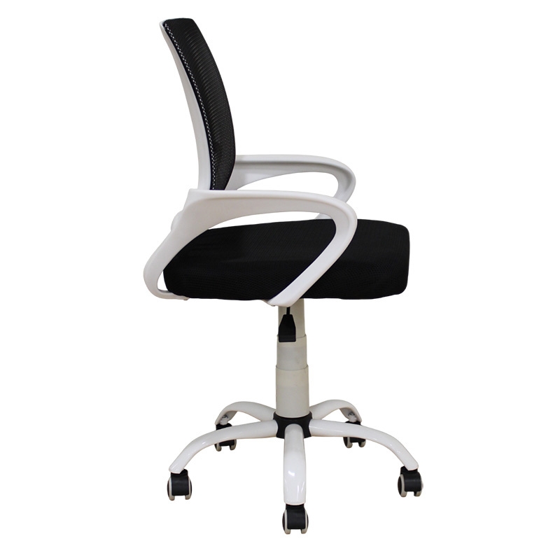 Α1850 SW πολυθρόνα γραφείου με ιδιαίτερο σχεδιασμό στην πλάτη και στρογγυλεμένα μπράτσα ώστε να ξεκουράζουν σε πολύωρη χρήση. Η πλάτη είναι ενδεδυμένη με μαύρο mesh ύφασμα για να αποτρέπει την εφίδρωση. Το κάθισμα διαθέτει μηχανισμό αυξομείωσης του ύψους με αμορτισέρ ενώ η βάση είναι μεταλλική σε λευκό χρώμα.