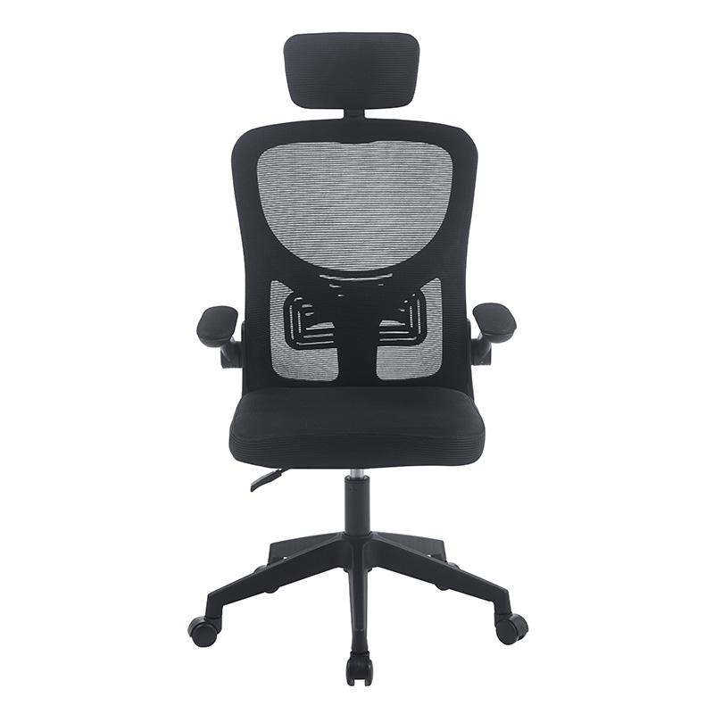 A9945 πολυθρόνα γραφείου με mesh ύφασμα στο κάθισμα μαύρου χρώματος καθώς επίσης και ανατομική πλάτη σε mesh ύφασμα χρώματος μαύρο για να αναπνέει η πλάτη.Διαθέτει προσκέφαλο για σωστή στήριξη του κεφαλιού και πτυσσόμενα μπράτσα επενδεδυμένα με μαύρο mesh ύφασμα για μεγαλύτερη άνεση,ρυθμιζόμενο ύψος,πλαστικό πόδι και ρόδες για εύκολη μετακίνηση.