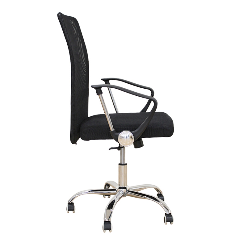 Α9946 πολυθρόνα γραφείου με μοντέρνο σχεδιασμό, πλάτη ενδεδυμένη με μαύρο mesh ύφασμα για να αποτρέπει την εφίδρωση και ανεξάρτητα μπράτσα με κεκλιμένη επιφάνεια που χαρίζουν περισσότερη εργονομία. Ανάκλιση πλάτης για μεγαλύτερη άνεση και μηχανισμό αυξομείωσης του ύψους με αμορτισέρ. Η βάση είναι χρωμίου για μεγαλύτερη αντοχή. Μπορεί να συνδυαστεί σε όλους τους χώρους.